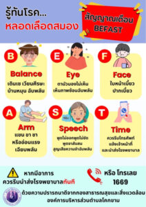 รู้ทันโรค หลอดเลือดสมอง สัญญาณเตือน BEFAST หากมีอาการข้างต้นควรรีบนำส่งโรงพยาบาลทันที ด้วยความปรารถนาดีจากกองสาธารณสุขและสิ่งแวดล้อมองค์การบริหารส่วนตำบลโคกขาม อ่านต่อ
